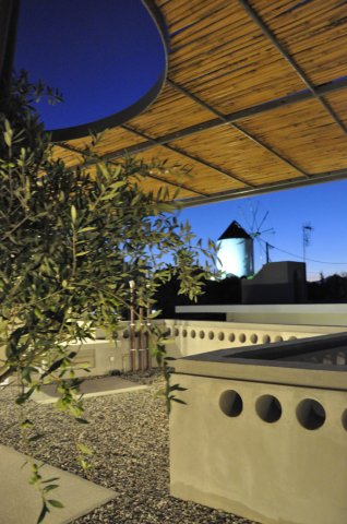 Παρατηρείστε τις κατόψεις, δείτε το τζάκι-σύννεφο και την κολώνα-δέντρο, το υπαίθριο υπνοδωμάτιο και το κουτσό κρεβάτι.