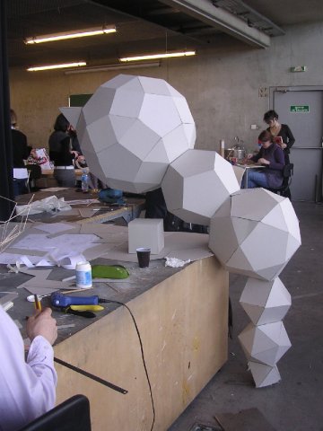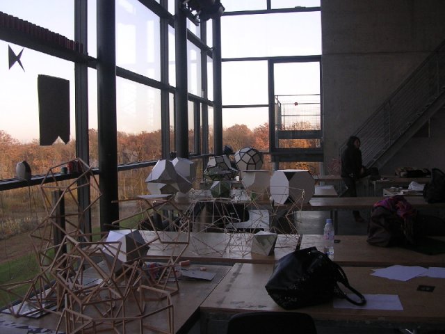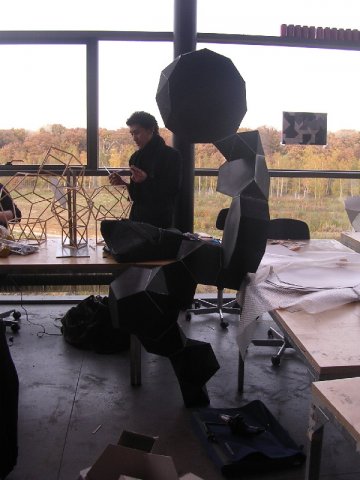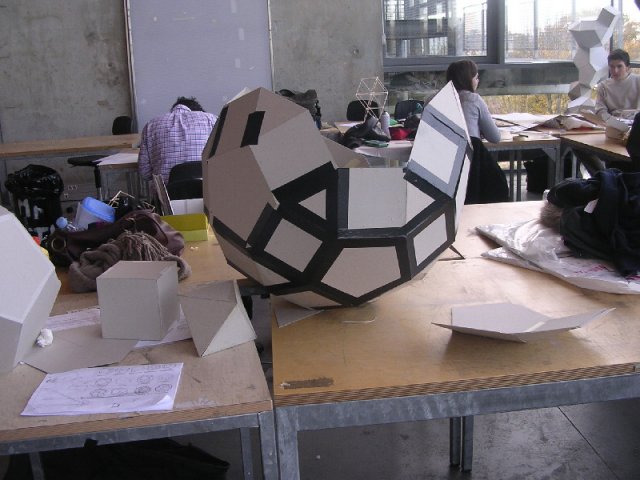 Επίσης, φωτογραφίες από την εργασία τους στο μάθημα της Γεωμετρίας, όπου οι φοιτητές πρέπει να κατασκευάσουν δυο μακέτες ύψους 2 μέτρων!!!, φτιαγμένες με πεντάγωνα, εξαγωνα κλπ. Είναι σε εξέλιξη και παραδίδεται στις 11 Δεκέμβρη.